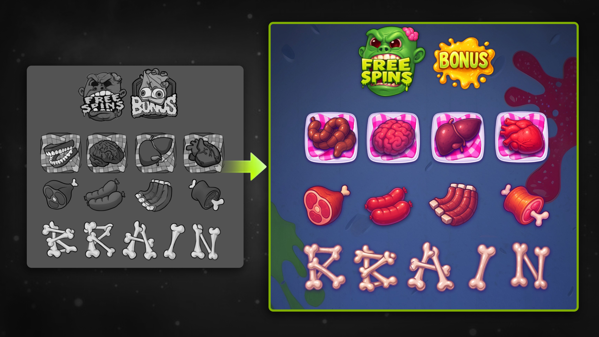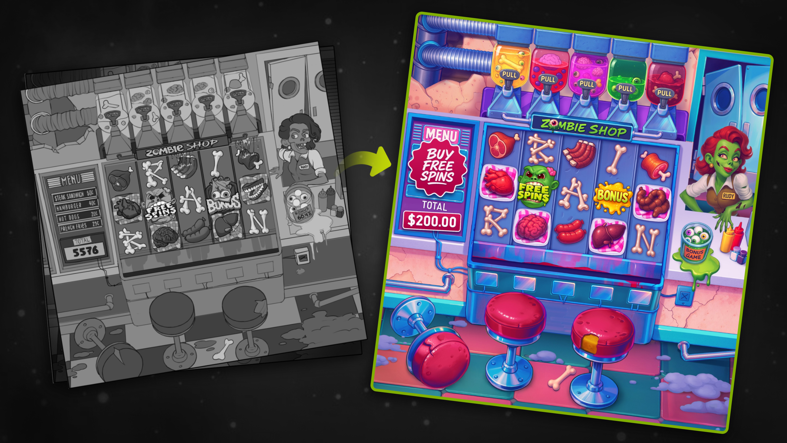Slot art must look rich without losing readability. Over-detailed styles often fail in real gameplay.