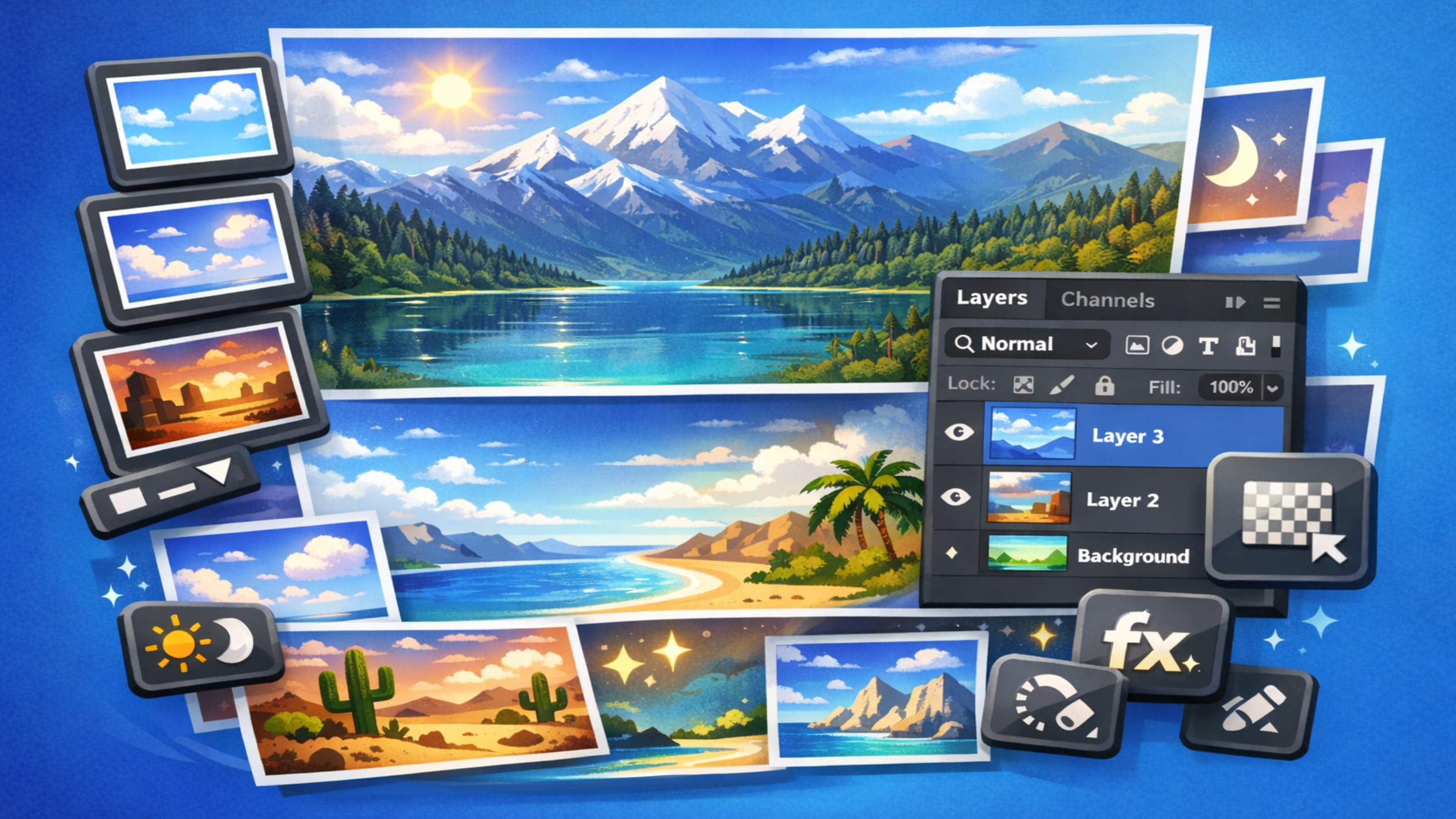 Layered scenes let you create fast premium upgrades later (lighting changes, motion overlays, micro-animation).