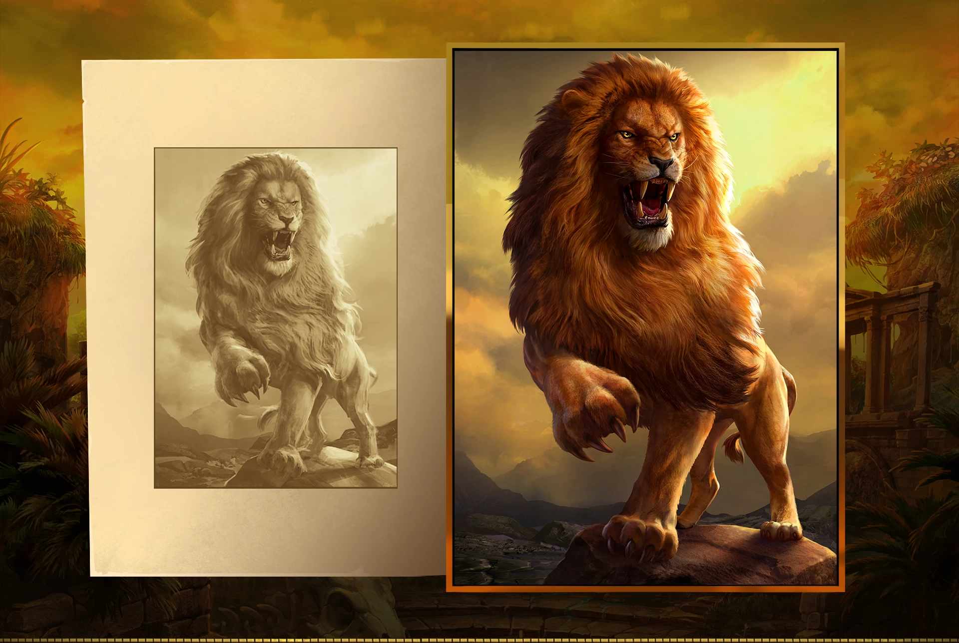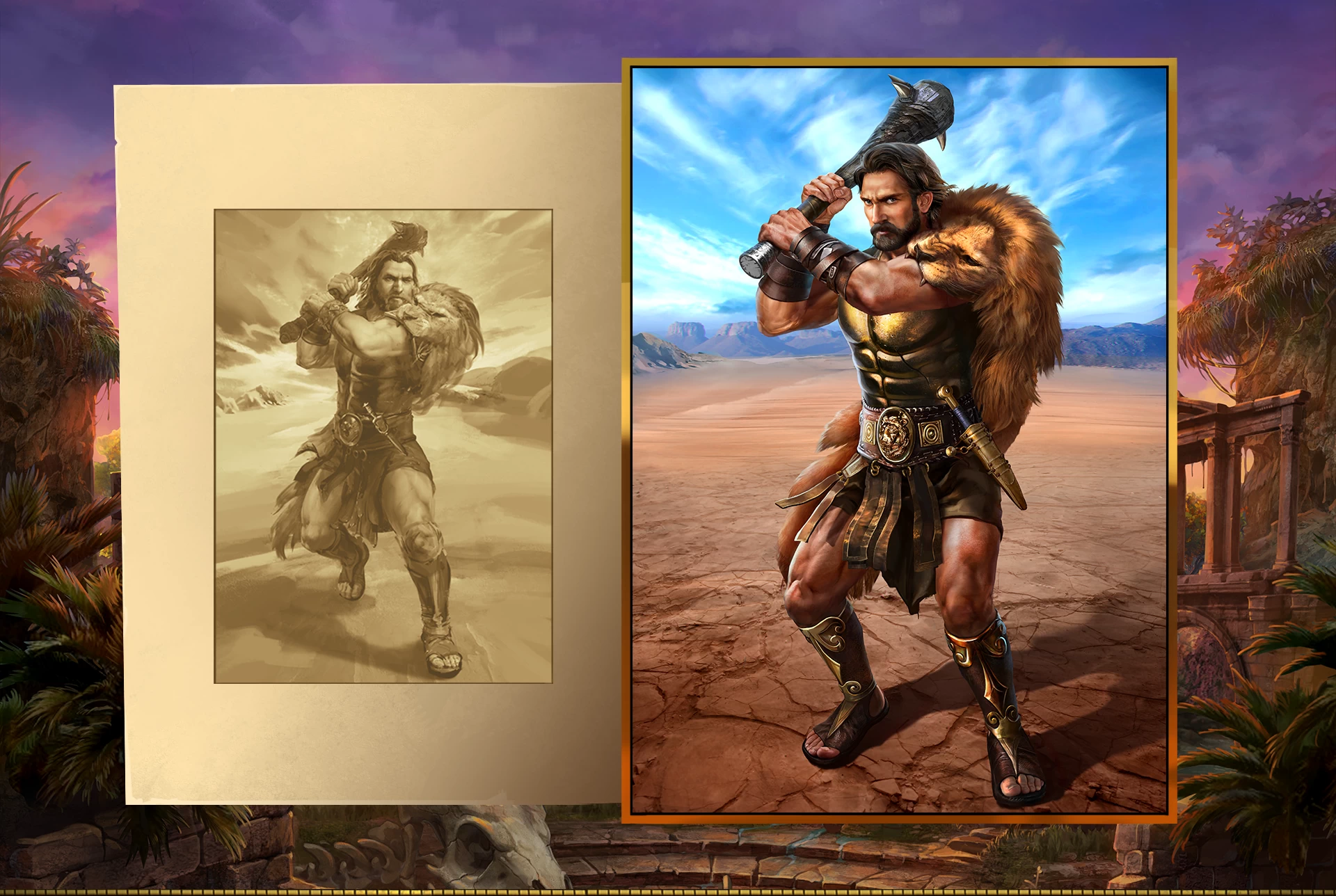 Base game includes: Game Logo, Backgrounds, High symbols, Medium symbols, Royal symbols, Scatter symbol, Wild symbol, Victory, intro/outro pop-ups, UI/UX, reel frame, and animations